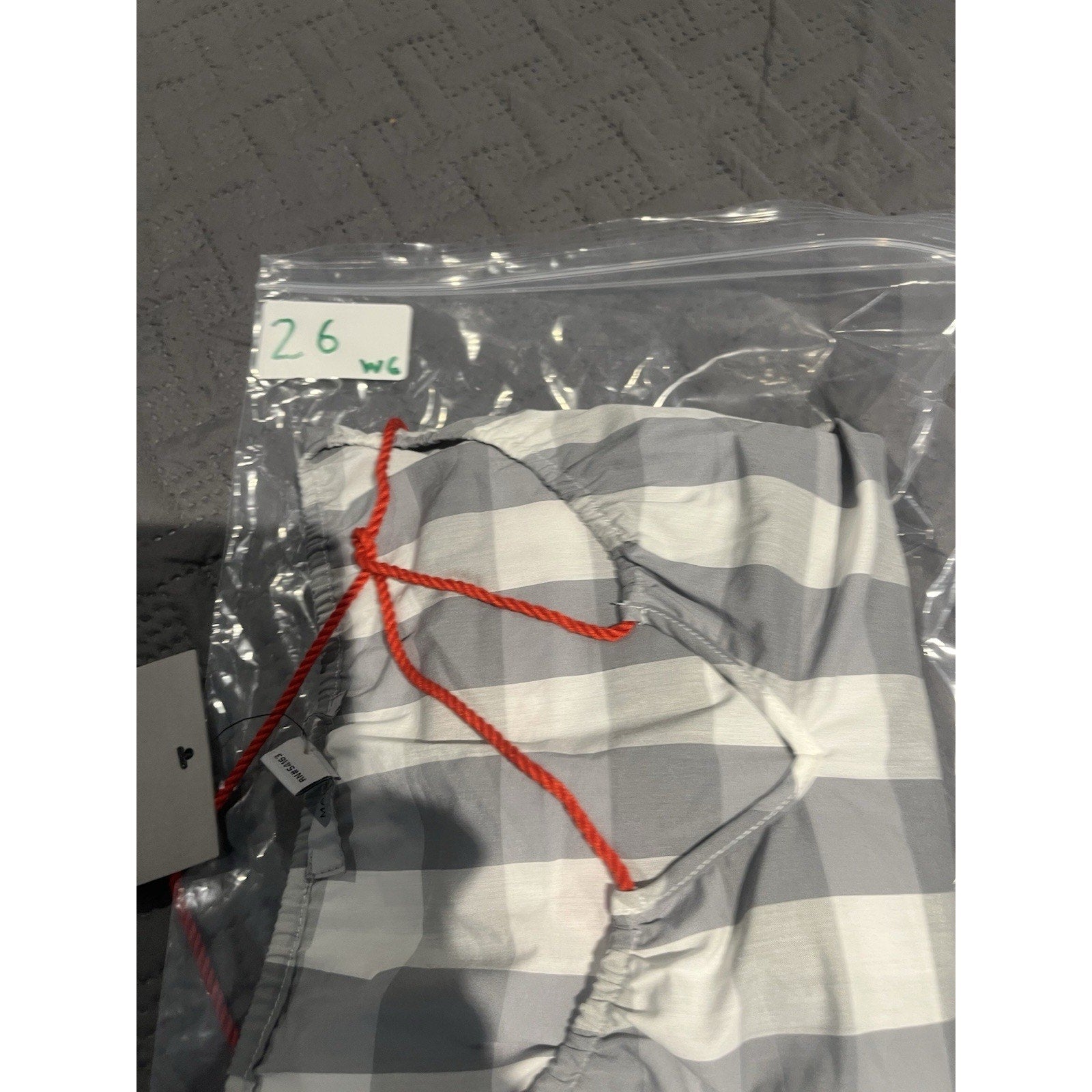 Andrew Marc Women's L Grey red floral embroidery gingham plaid top NWT
