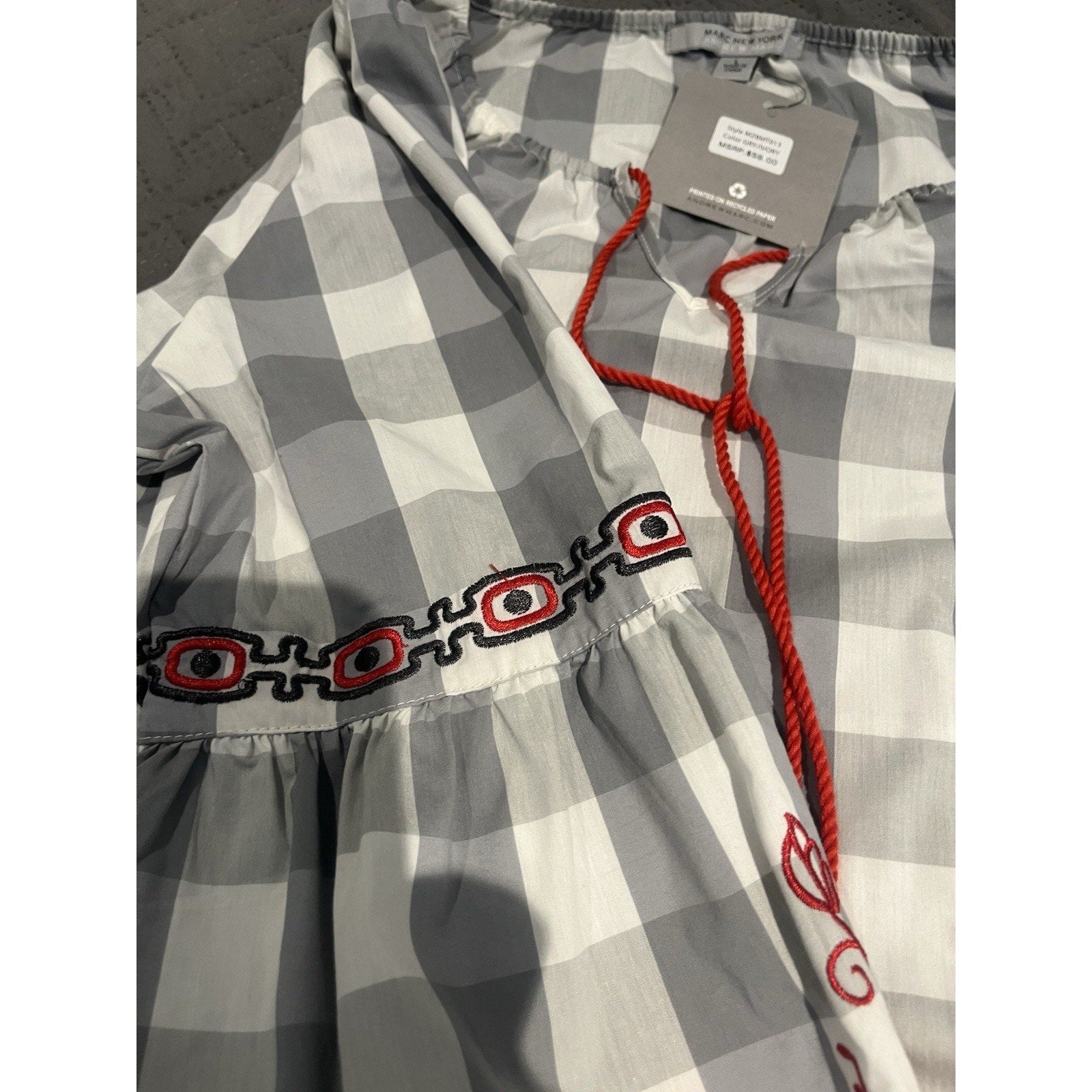 Andrew Marc Women's L Grey red floral embroidery gingham plaid top NWT. Condition is New with tags. Shipped with USPS Ground Advantage.