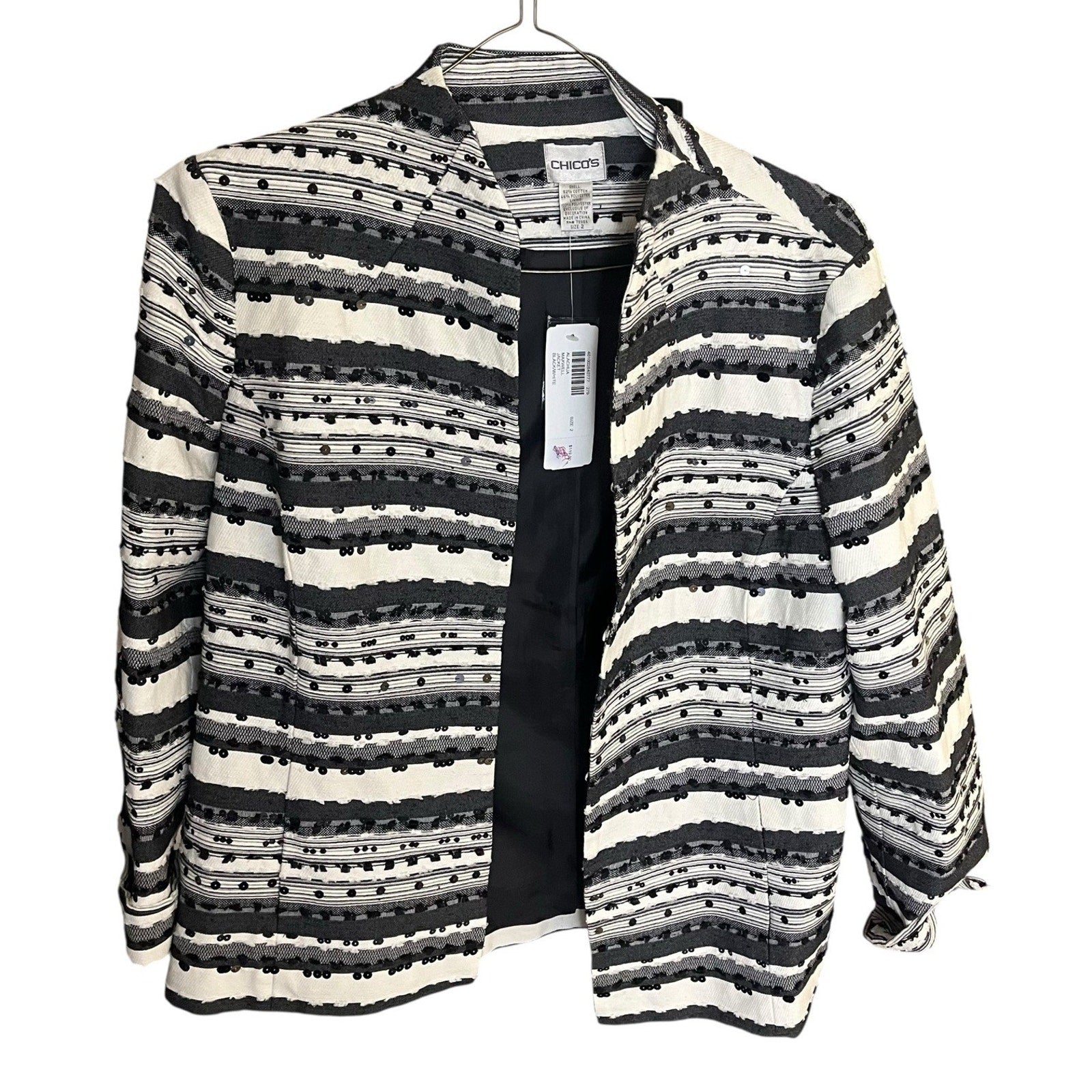 Chico's women's sz 2 Sequin striped black & white blazer jacket NWT