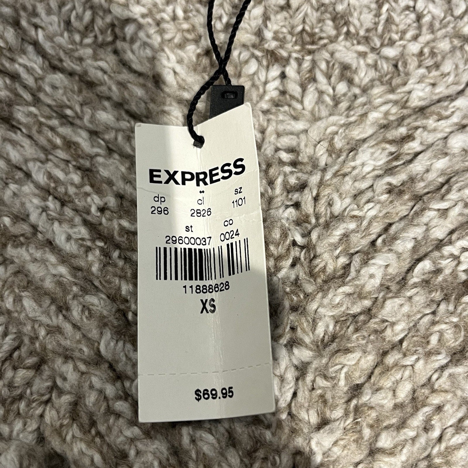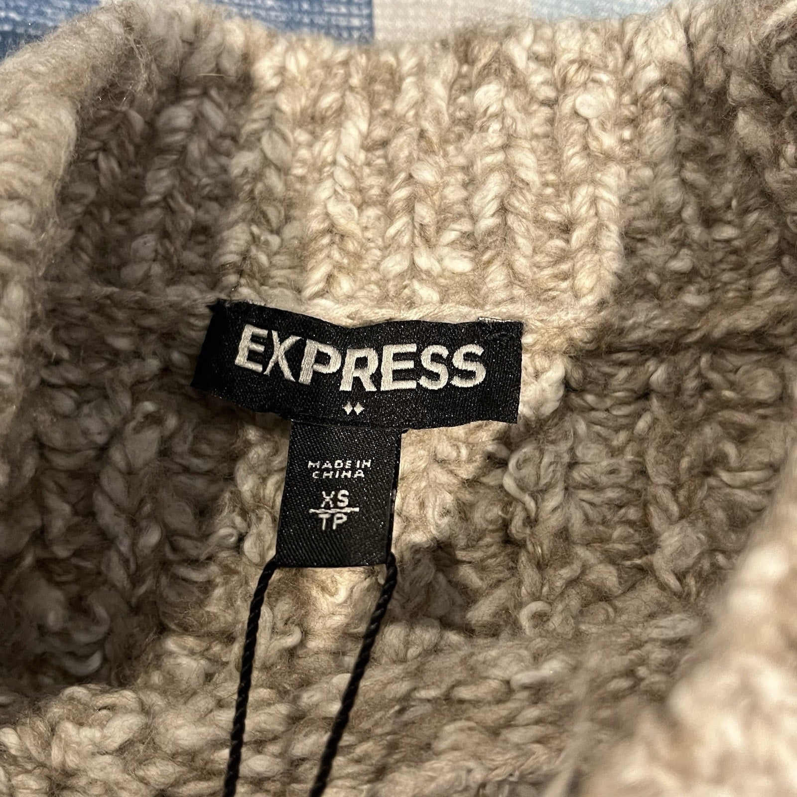 Express Women's XS cold shoulder sleeve cable knit beige sweater NWT