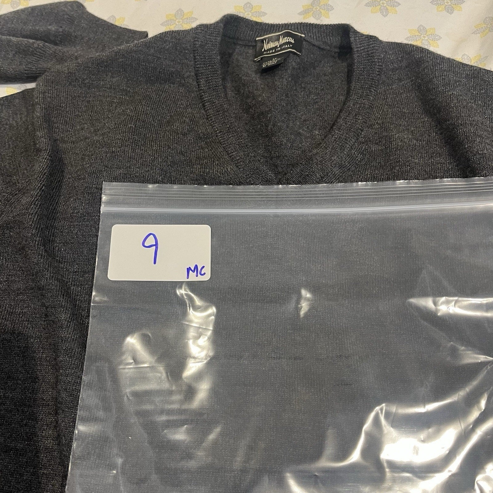 Neiman Marcus men's M merino wool v-neck long sleeve sweater made in italy. Condition is Pre-owned - Excellent. Shipped with USPS Ground Advantage.
