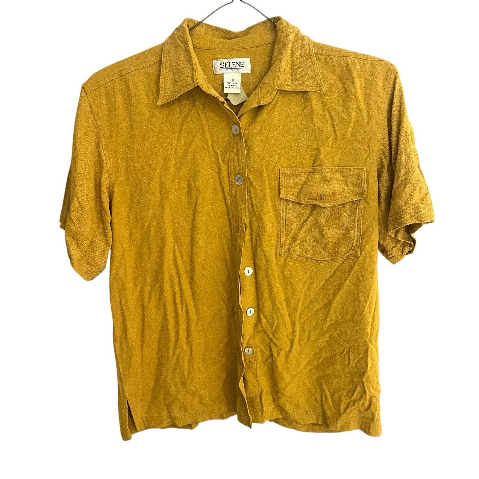 Selene men's S button up collard 100% silk shirt. Condition is Pre-owned - Excellent. Shipped with USPS Ground Advantage.