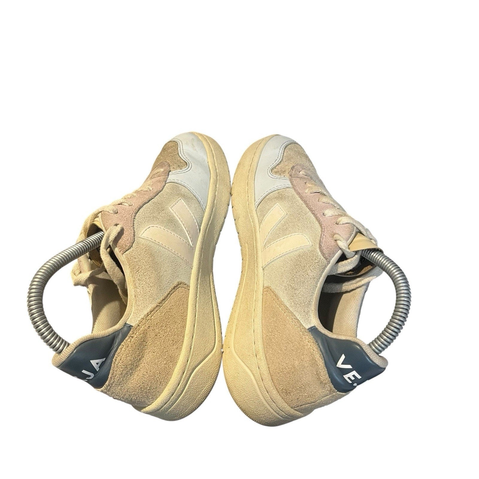 Veja Women's V-10 Low Top Sneaker , White Navy Sage Purple Beige , US 7 / EU 38. Condition is Pre-owned. Shipped with USPS Ground Advantage.